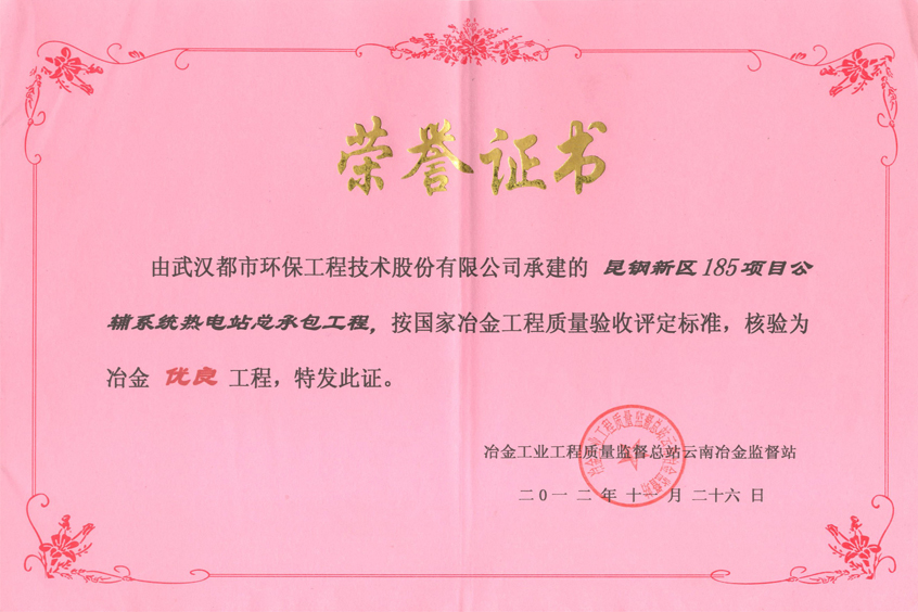 武钢热力厂高炉煤气综合利用供热电站工程(证书)