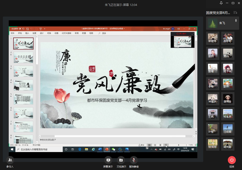固废党支部开展2020年4月“党风廉政”党课学习活动