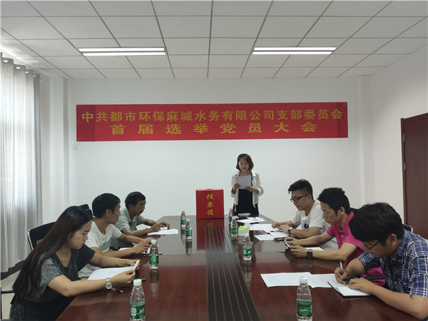 2019年7月2日,经过积极筹建,在上级党组织的领导和支持下,中共都市环保麻城水务有限公司支部委员会正式成立。7月2日下午,在麻城经济开发区污水处理厂党员活动室召开了麻城公司党支部委员会首届党员大会,并进行了支委成员选举活动。 庄严的国歌响起,大会在一阵高亢昂扬的国歌声中拉开序幕。此次选举严格按照《中国共产党章程》、《中国共产党基层组织选举工作暂行条例》等有关规定,按照既定程序表决通过了大会《选举